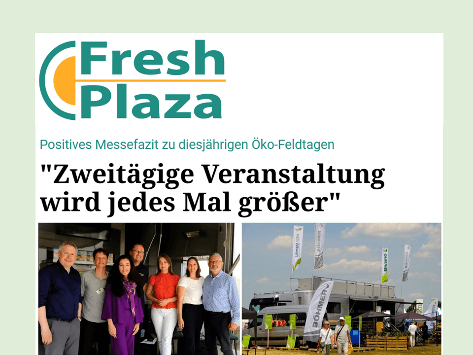 Unter strahlend blauem Himmel und bei sommerlichen Temperaturen waren die Öko-Feldtage auf dem sächsischen Wassergut Canitz GmbH ein voller Erfolg. Auch wir von lehmann natur waren gemeinsam mit Bivano von der BÖHMER Gruppe vor Ort. Fresh-Plaza berichtet.